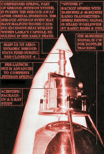 "THE COLD WAR - SPUTNIK - AND SOVIET SPACE DOG LAIKA" Please note - BOLD TYPE IS HISTORICAL and NORMAL TEXT IS FICTIONAL by: Aaron George Bailey Sherwood, Arkansas USA This Web Page was created on October 4, 2007 CHAPTER #5 - PAGE 1 OF 2 RIDING FIRE AND THUNDER - LOOKING THROUGH THE EYES OF LAIKA - part 1 of 2 |