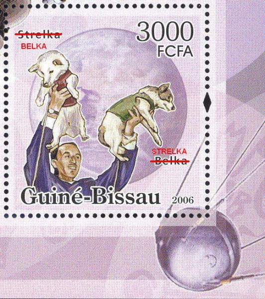 At a news conference Oleg Gazenko shows reporters that Belka (to
