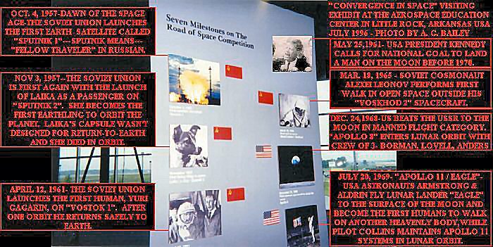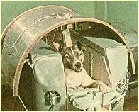 www. -THE COLD WAR - SPUTNIK - AND SOVIET SPACE DOG LAIKA- .com Commemorating the 50th Anniversary of "The Birth of the Space Age" On October 4th, 1957, Russia shocked the world when it blasted Sputnik-1 into earth orbit as the first artificial satellite. Bitter Cold War rivals, American and Russia stood toe to toe, both armed with nuclear bombs and both locked in an ideological life or death struggle. Up until this time, America was thought to be the High-Tech leader of the world but the Russian Sputnik demonstrated a powerful rocket and satellite capability which America didn't have. With bruised pride, America felt outclassed by a nation of peasants. Fear spread throughout the USA, because the powerful Sputnik rocket could hurl A-bombs right into the heart of America. Feeling helpless, Americans gazed up at Sputnik gliding across the twilight sky. "Now the Americans sleep under a Russian moon", boasted leader Nikita Khrushchev. Exploiting the Russian lead, he wanted to embarrass America further with his vision of a more magnificent spaceship. Khrushchev ordered his rocket engineers to build Sputnik-2 in just three weeks, and this time, a living being should ride the rocket into orbit. In early November the special order was met as Khrushchev's cobbled together spaceship was ready for blast-off and a small dog named Laika was ready to rocket into history on its fire and thunder. Part of a group of research dogs, she was selected mainly for her calm nature. Specially trained, Laika was conditioned to vibration, noise, lengthy confinement and restricted movement within small capsules, and also high G centrifuge runs and airplane rides to familiarize her with the sensations of flight. Being wired with biomedical sensors and wearing space garments became a way of life for Laika. She also learned to eat a food / water mix in jelly form. (ABOVE)- Cameras flashed as Laika posed for the Media on Oct. 27th, and then after some coaxing she barked into a microphone, much to the delight of Radio listeners. Later she was flown from the Moscow training center to the secret Baikonur launch site. On the morning of Oct. 31st she was taken for a walk before being fitted with space gear.(3G) Chained within the tiny capsule for 65 hours, Laika waited as last minute problems kept Sputnik-2 grounded on the launch pad.(5) Finally, on the morning of November 3rd, 1957, the countdown reached zero. Laika barked at liftoff as she rode Sputnik-2 into the unknown Cosmos and became the first Earthling to orbit the planet. Hastily built, her tiny capsule was unable to handle the harsh conditions of space and she died of heat stress after surviving for only 5 to 7 hours. In truth, there never was a happy homecoming planned for Laika, because, in 1957 the Russians did not know how to return a space capsule safely to earth. Entombed inside her capsule, Laika rode the fury of the rocket one way into doom. In retrospect, her fight was a politically motivated stunt, less about science and more about beating the Americans. Meanwhile, Premier Nikita Khrushchev beamed with delight as Russia beat America once again by orbiting the first biological specimen. From street dog to Space Dog, Laika served her Russian Masters well. The Sputniks caused a reflex response from America as President Eisenhower created NASA, and ARPA which later became the WWW as we know it today. The early Space Age quickly evolved into a game of who was first. Competition between Russia and America triggered a technological explosion which rained back down to Earth for the practical benefit of all Mankind. Always remember the small stray dog from the streets of Moscow, her sacrifice helped lead Humanity into the future, and changed the World forever. by: Aaron George Bailey - Sherwood, Arkansas |